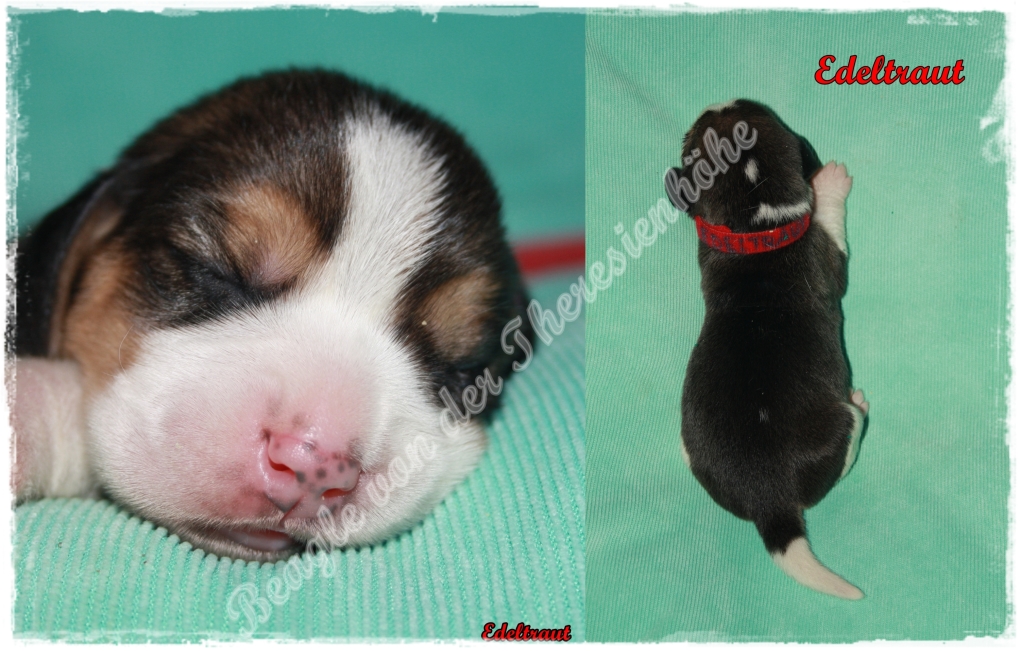 ![]() Edeltraut Hunters Love von der TheresienhöheGechlecht: Hündin Farbe: tricolour Geburtszeit: 11.20 Uhr Geburtsgewicht: 305 g