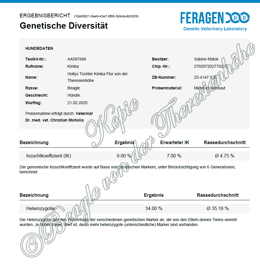 Umfassende genetische Untersuchung: Kimba wurde lückenlos gesundheitsgeprüft.