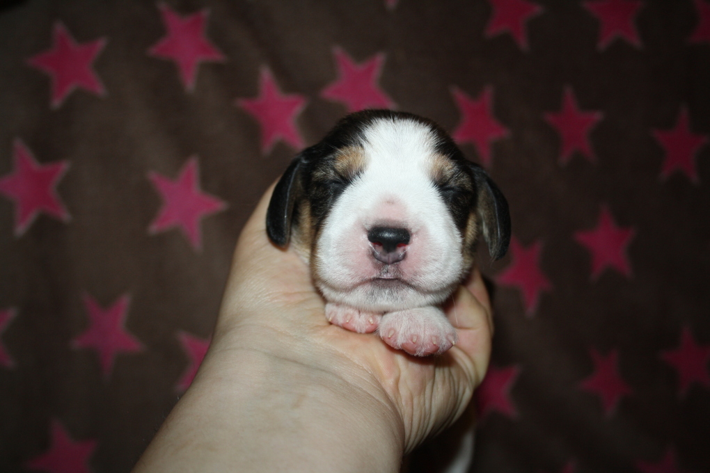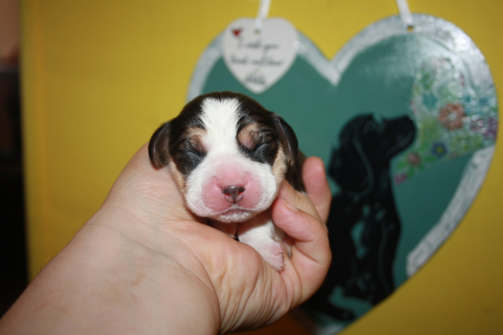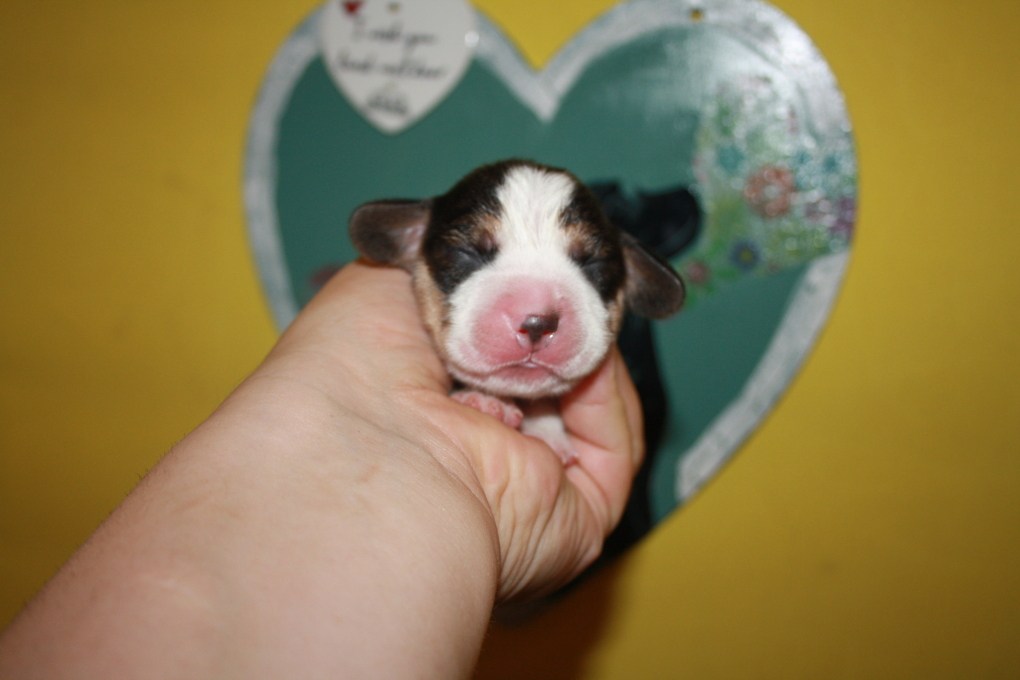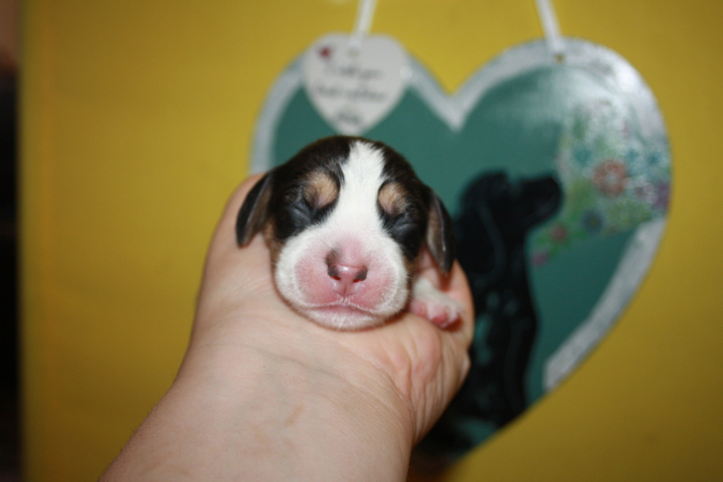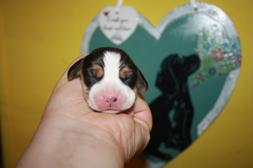 Am 22. Juni hat unsere Kimba uns in einer schnellen und völlig unkomplizierten Geburt mit 9 wundervollen Welpen beschenkt – 1 Bicolour und 8 Tricolour - 5 Rüden und 4 Hündinnen.
