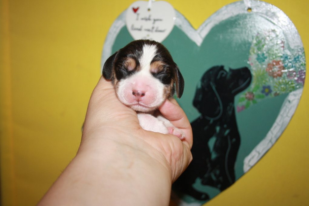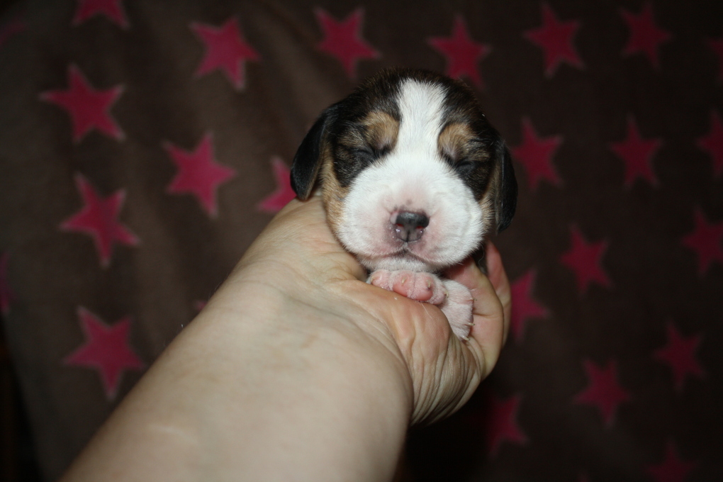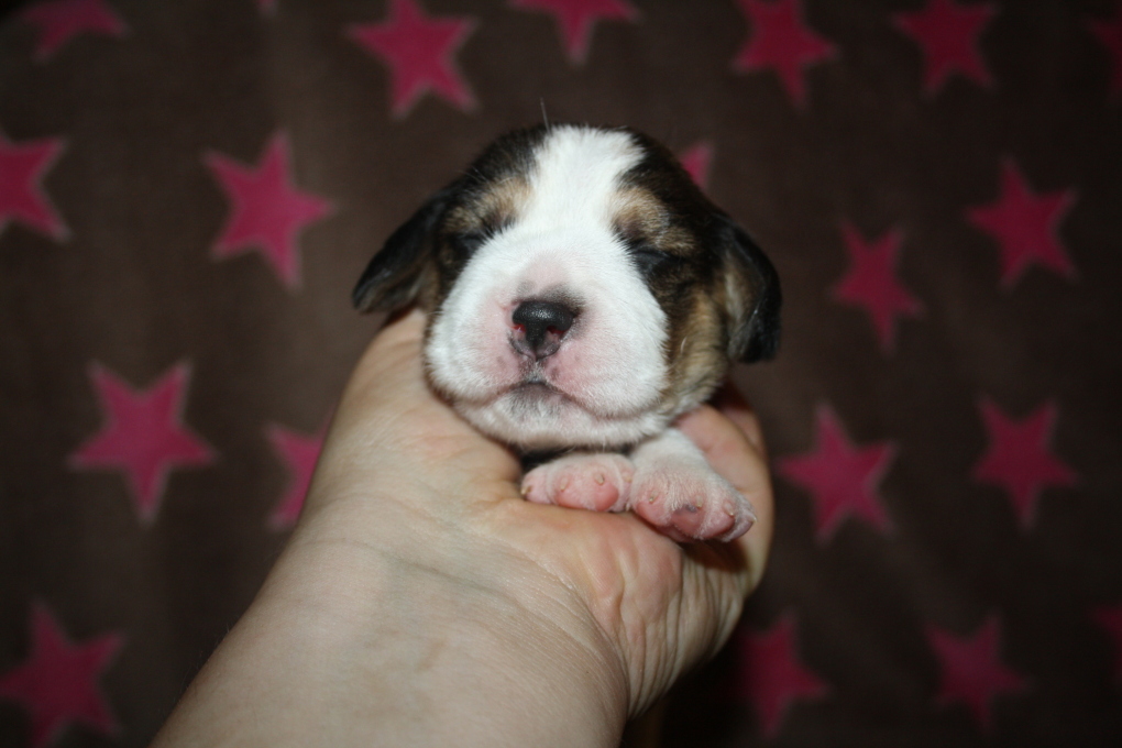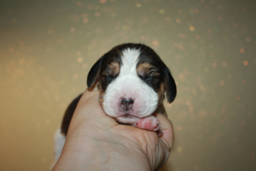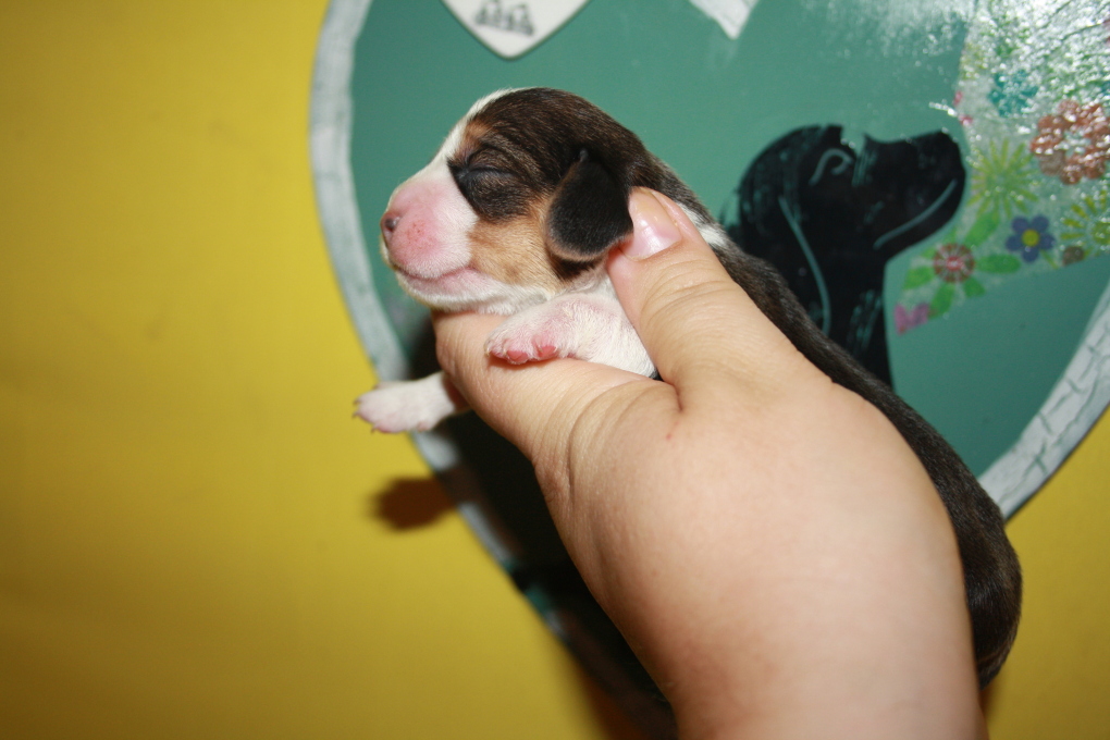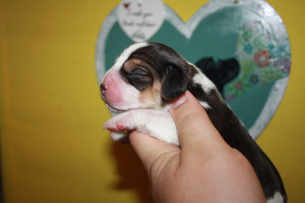 Am 22. Juni hat unsere Kimba uns in einer schnellen und völlig unkomplizierten Geburt mit 9 wundervollen Welpen beschenkt – 1 Bicolour und 8 Tricolour - 5 Rüden und 4 Hündinnen.