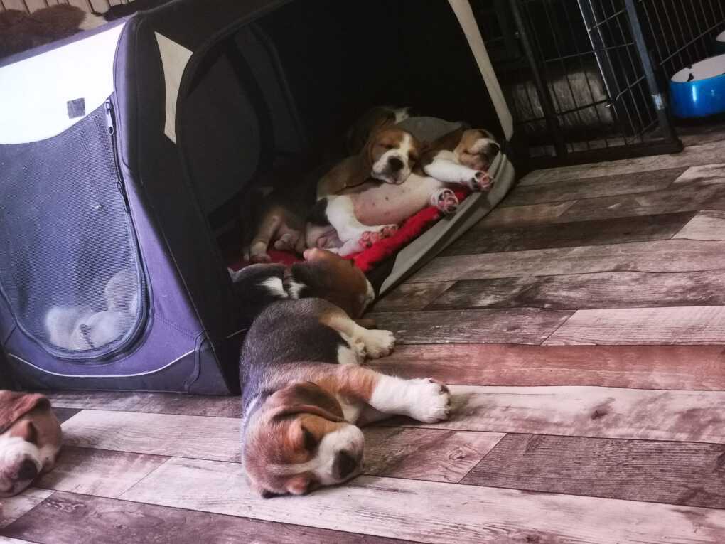 - Entspannung pur: Wir nutzen die Box gezielt für die Ruhephasen. Wenn die Welpen müde gespielt sind, schlafen sie oft ganz von allein in der geschützten Atmosphäre der Box ein.