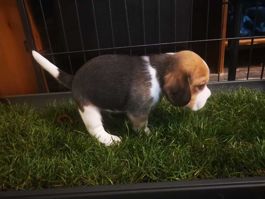 Wir fördern die natürliche Reinlichkeit der Welpen von Anfang an. Sobald die Kleinen ihre Augen öffnen und mobiler werden, führen wir ein gezieltes Training ein: